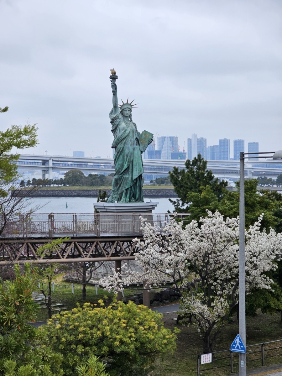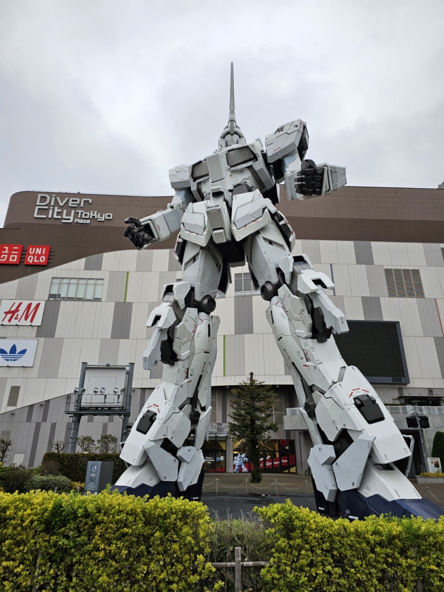 接下來搭百合鷗線前往台場,雖然雨停了,但是外面還是相當濕冷,本來想說如果天氣好可以在海濱公園坐著看海,不過陰冷的天氣實在是待不住,看了自由女神像和簡單繞一圈海濱公園看了一下櫻花就往這次的主要目標Diver City去了,說到Diver City要提的當然就是外面那尊等身大獨角獸鋼彈,站在旁邊看實在是很壯觀,剛好也有等到獨角獸鋼彈變形表演,雖然只有短短一分多鐘,不過會變形果然最帥了XD。之後又陪喜愛哆啦A夢的家人逛了哆啦A夢未來百貨,主要是賣哆啦A夢周邊的東西,也有一些可以付費遊玩的互動場景,在這邊買了點東西做紀念後再去美食街填飽肚子就離開台場了。
