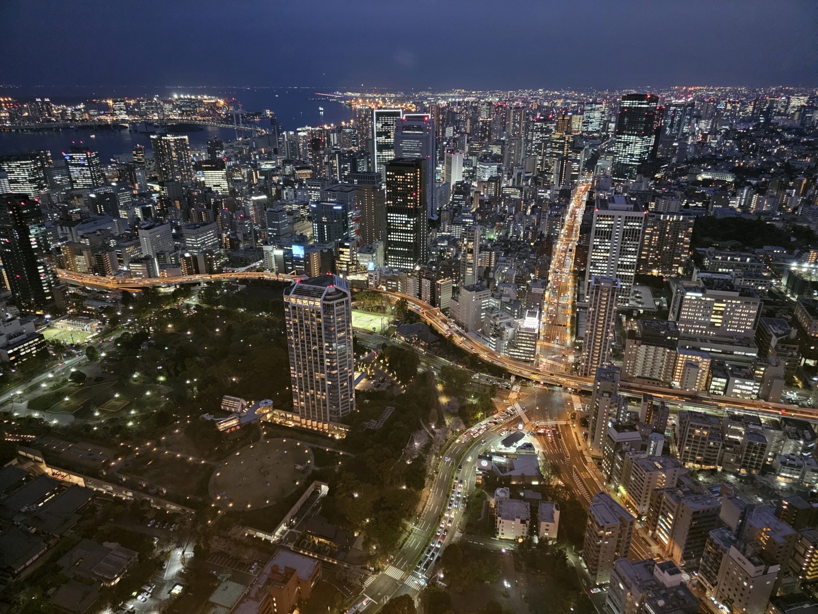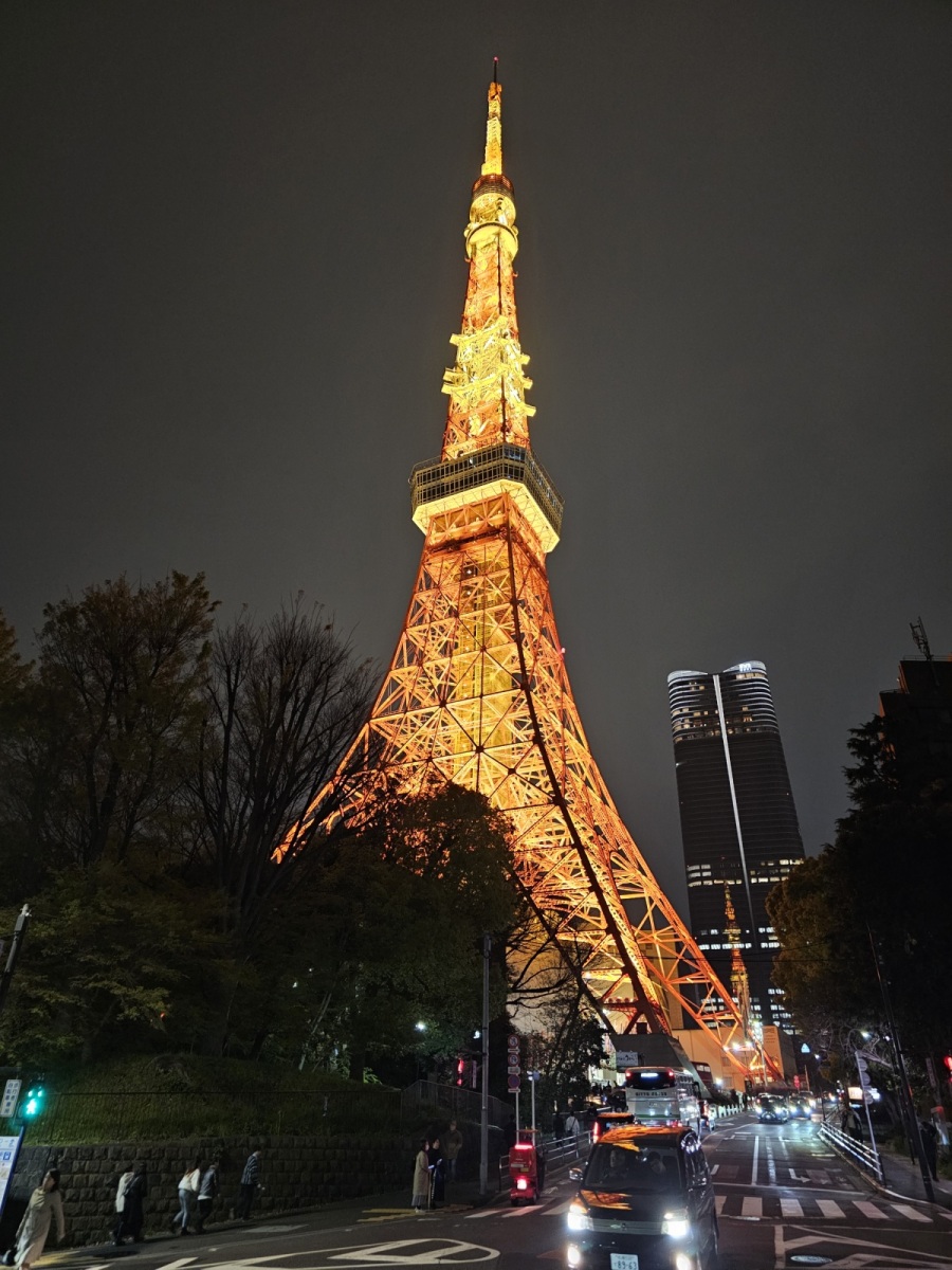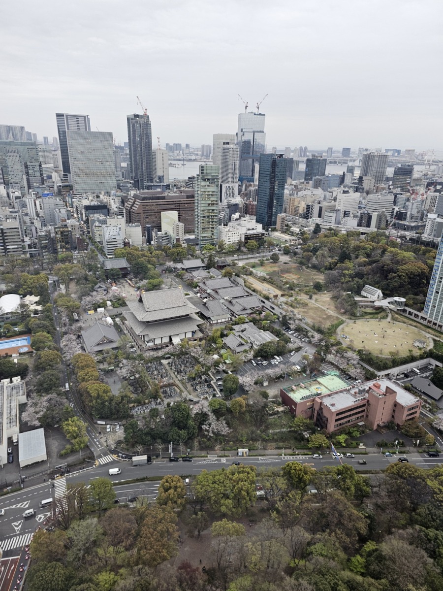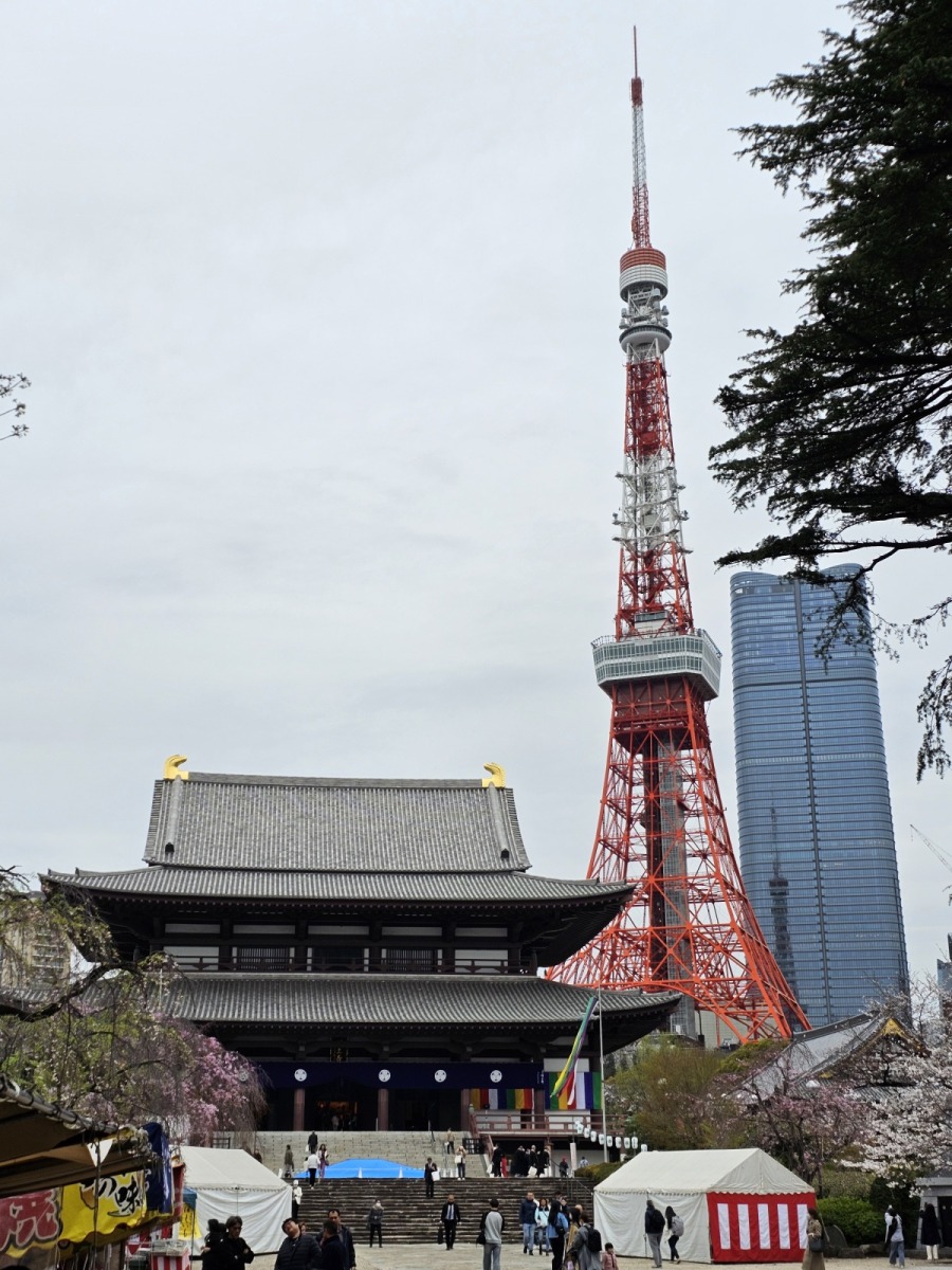 搭單軌電車回到濱松町後就直接走去東京鐵塔,路上經過增上寺正好有舉辦法會的樣子,裡面還有攤販擺攤,吃了點東西補充體力再拍點東京鐵塔和櫻花的合照就上東京鐵塔展望台了。在展望台上從傍晚一直待到晚上,看著天色漸漸變暗,東京的燈光陸續亮起,最後整個東京的美麗夜景盡收眼底,雖然過了很累的一天,但在美景的眼前也就暫時拋在腦後了。