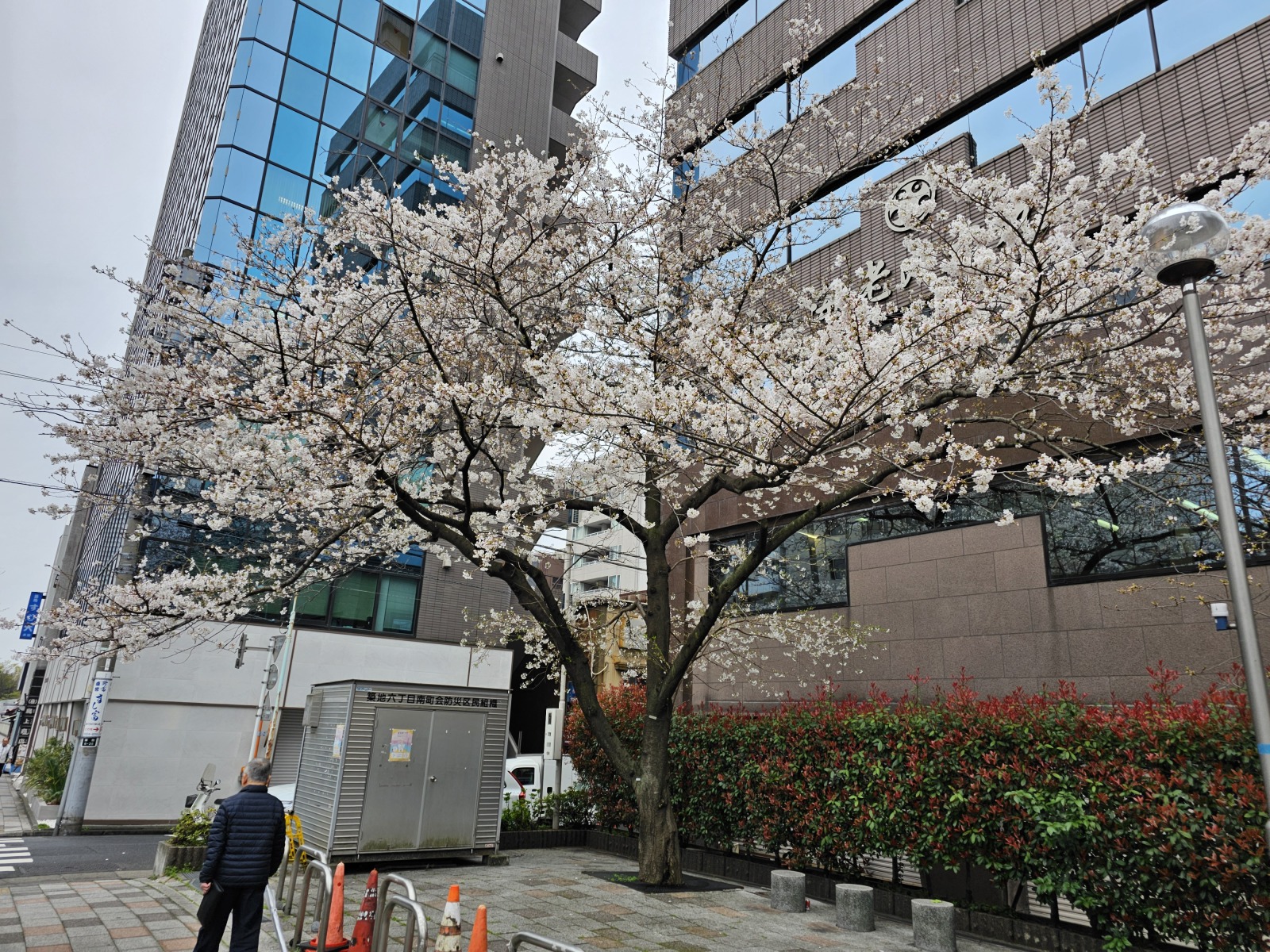 最後把築地場外市場的範圍都稍微繞一下,在魚河岸看到各種美味的海產,但大多是生鮮的只能看著流口水。路邊還看到一顆滿開的櫻花,因為是這次旅程的第一個景點,看到櫻花就很興奮,如果是已經去看過其他點的櫻花的話大概就會覺得這棵櫻花沒什麼了。