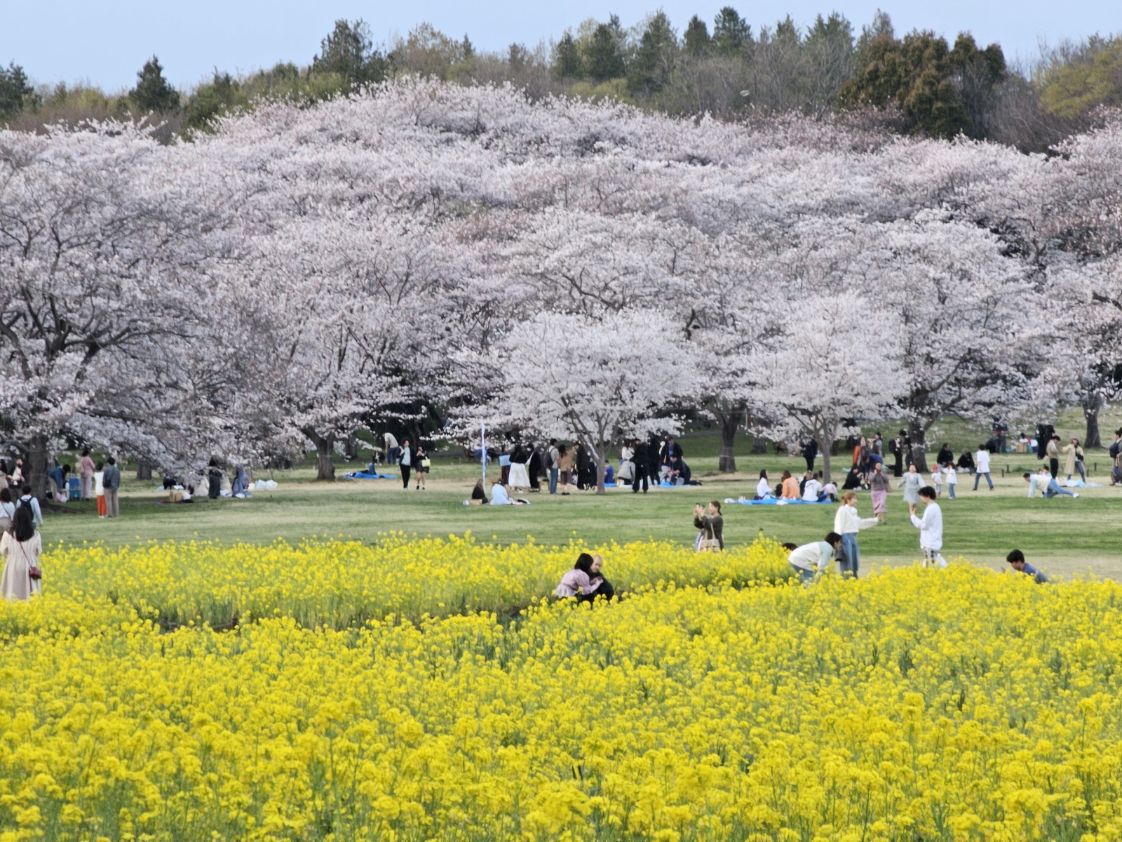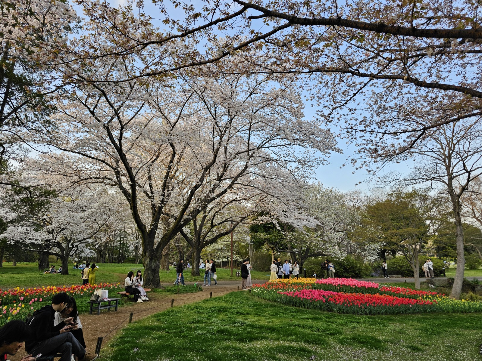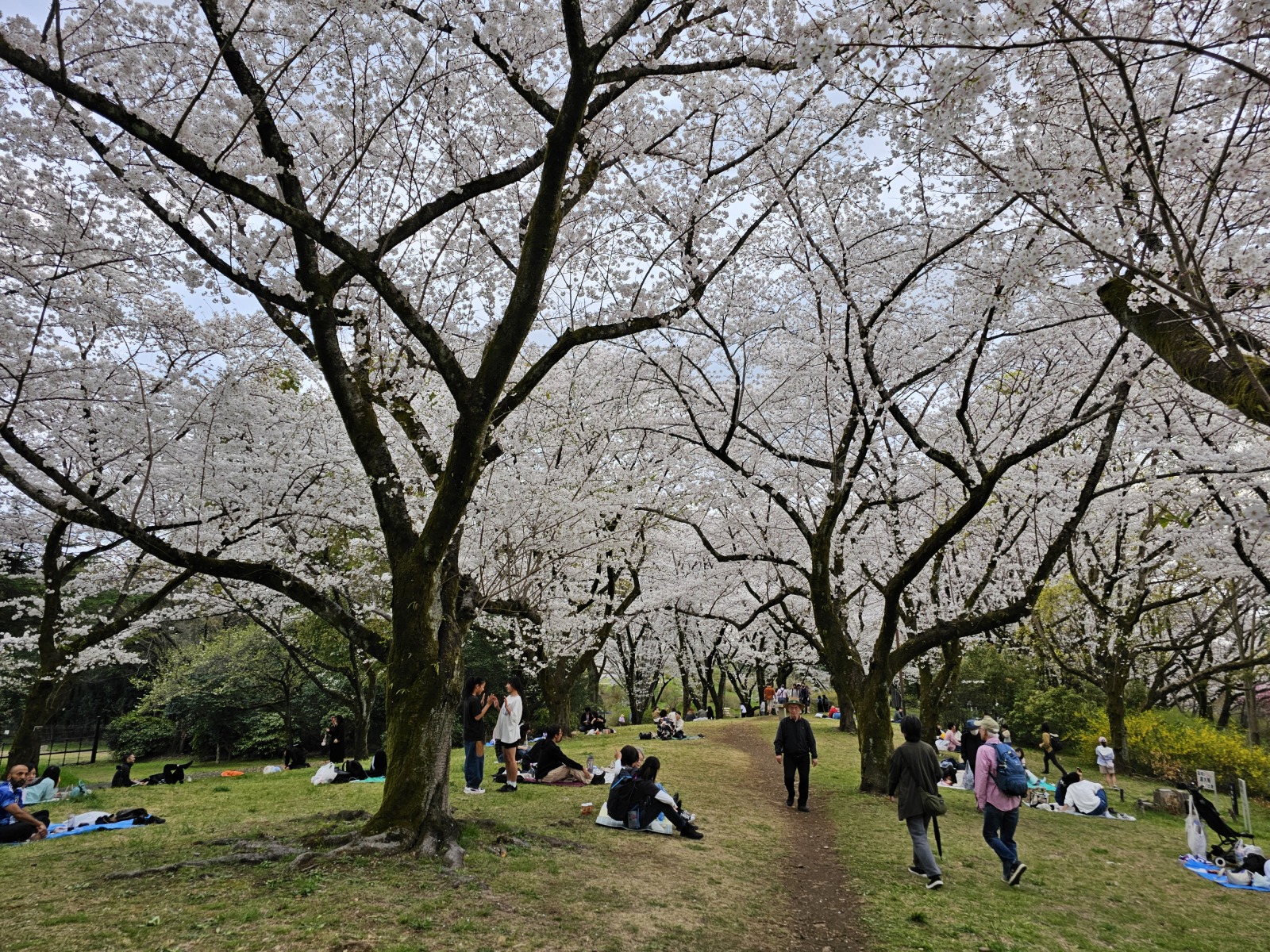 回到登戶站這次改搭JR南武線到立川站,出來後約走15分左右就可以到昭和紀念公園,還沒過剪票口外面就有一些櫻花盛開,底下也是很多日本人在野餐,不得不說日本人真的超喜歡野餐賞櫻,進到公園後的櫻花樹下也是都能看到有人在野餐。