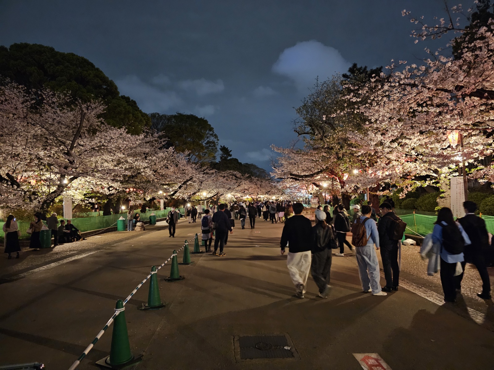 回到東京站,逛了一下地下的東京一番街,這時候家人覺得昨天沒看到夜櫻很可惜,於是回飯店拿行李前又跑去上野公園賭賭看,結果上野公園的燈籠也是八點就關,我們前腳剛到拍了幾張照,後腳燈就熄了,看來這次是跟夜櫻完全無緣。