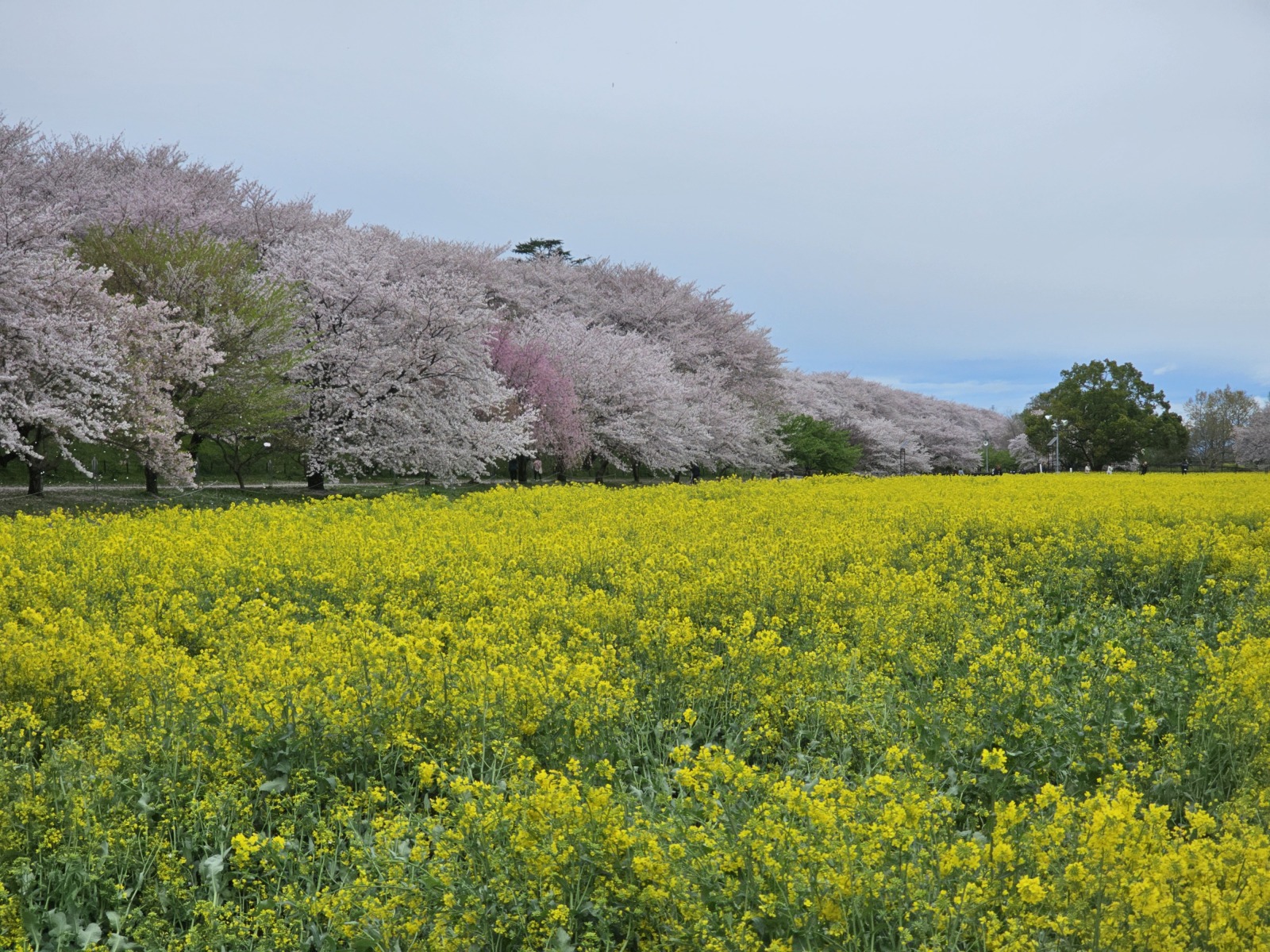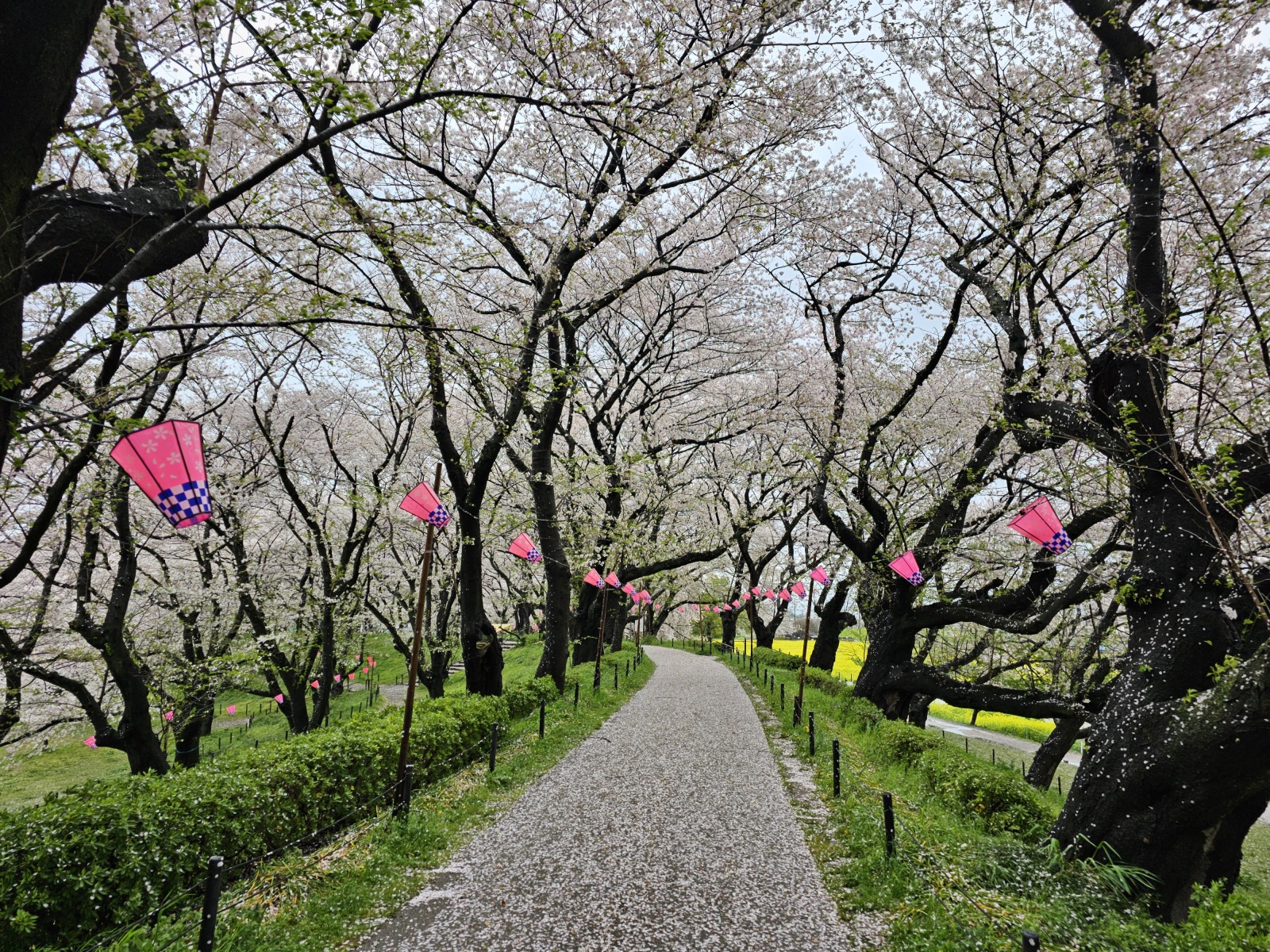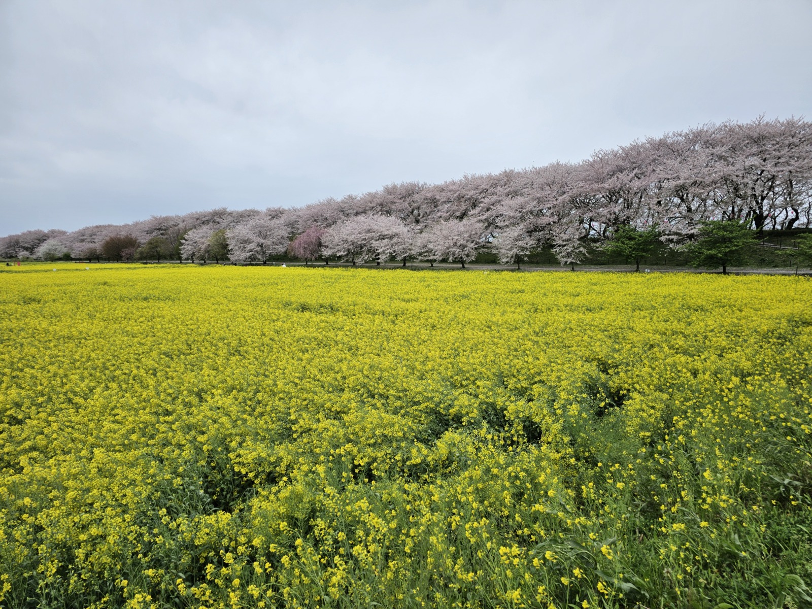 雖然整個幸手權現堂堤公園的區域並不算大,不過規劃的真的很好,走在堤防上可以看兩邊的櫻花包圍著自己,並且一路延伸下去,走遠一點可以看油菜花和櫻花的雙色搭配,等到夏天六月還有繡球花,九月有彼岸花可以看,在觀光規劃這塊真的看得出日本人的用心。