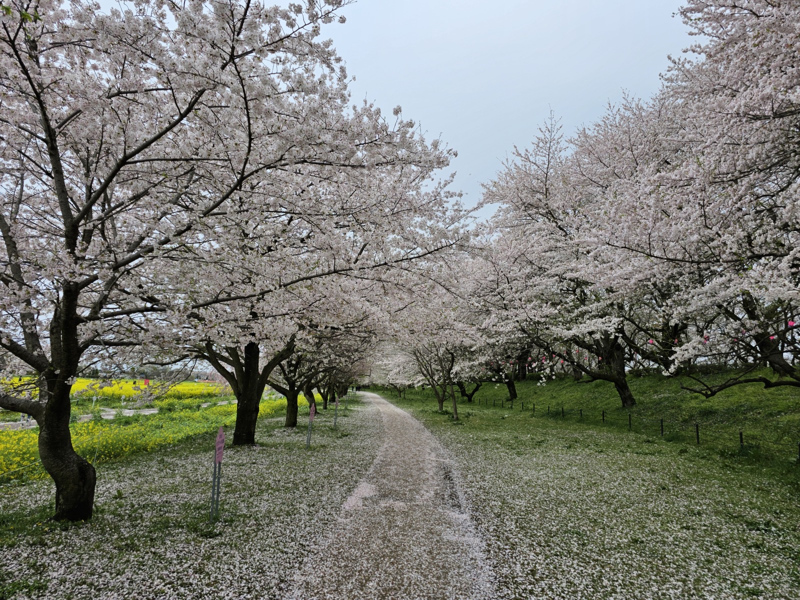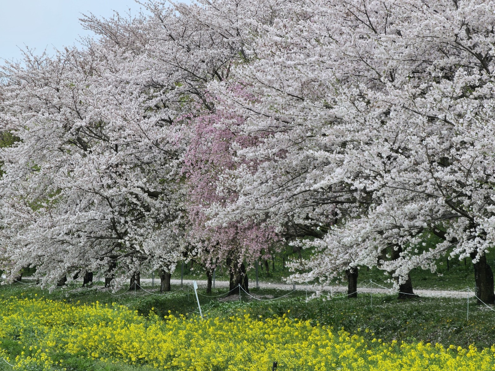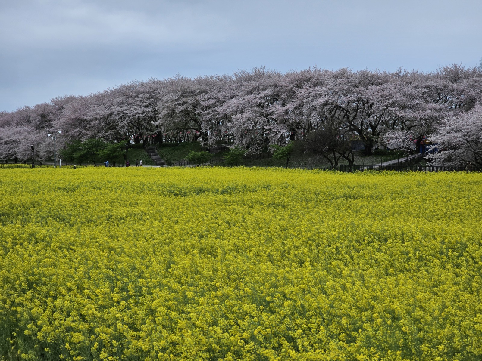 雖然整個幸手權現堂堤公園的區域並不算大,不過規劃的真的很好,走在堤防上可以看兩邊的櫻花包圍著自己,並且一路延伸下去,走遠一點可以看油菜花和櫻花的雙色搭配,等到夏天六月還有繡球花,九月有彼岸花可以看,在觀光規劃這塊真的看得出日本人的用心。
