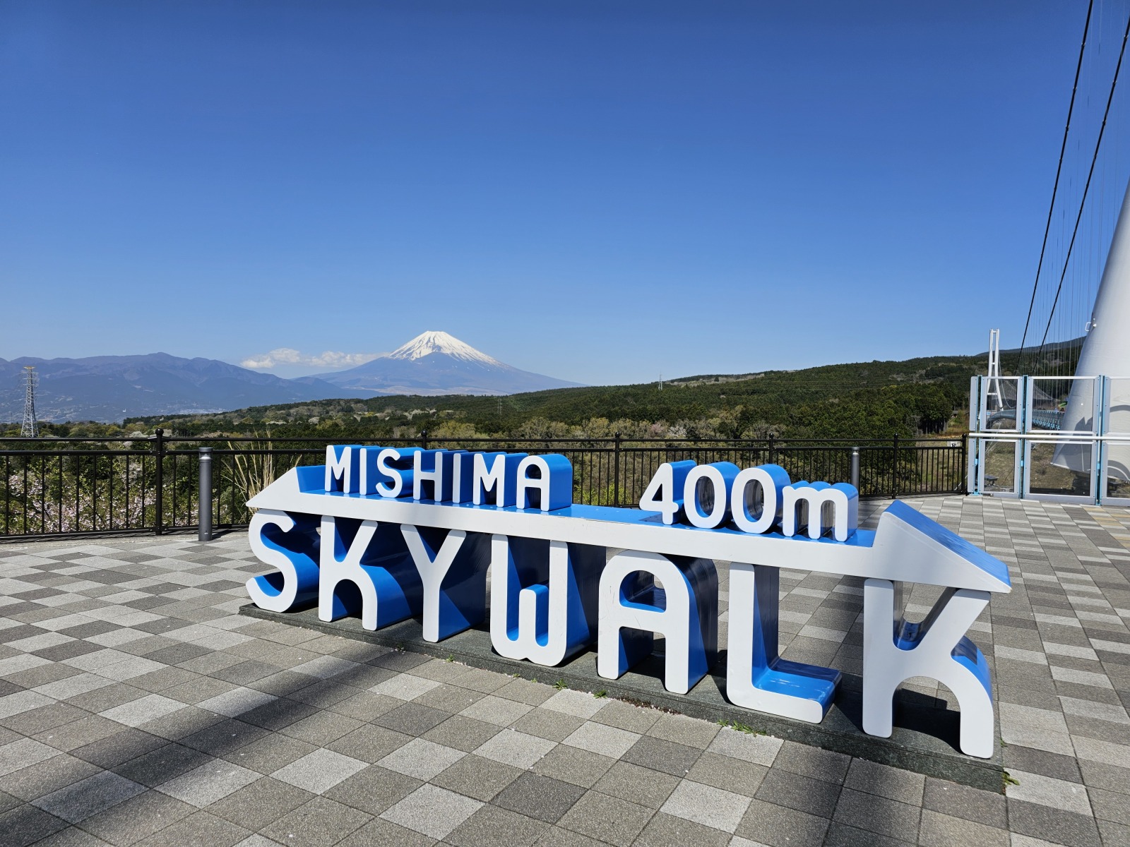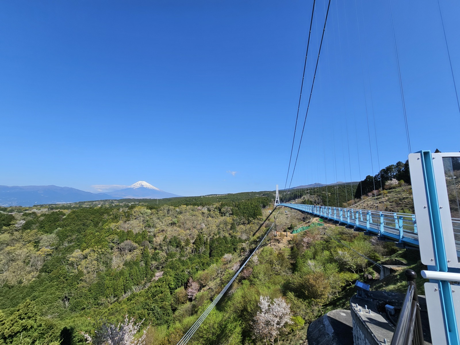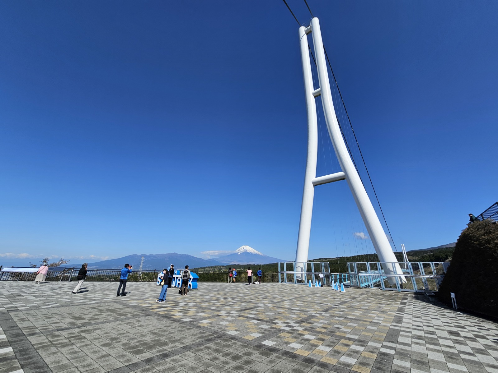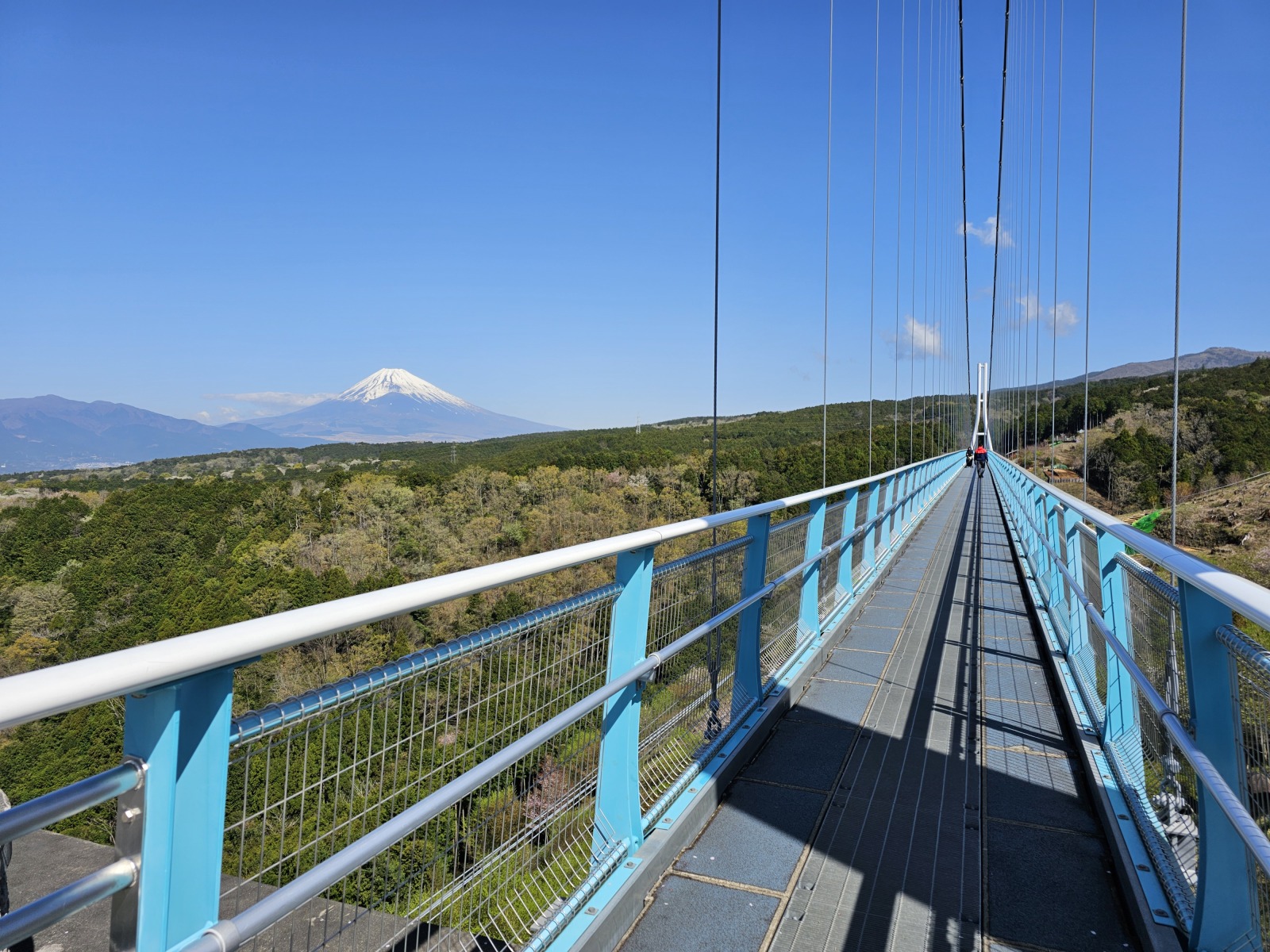 走在吊橋上其實不怎麼會晃動,邊走可以邊看著前方的富士山,延伸出去的吊橋和富士山是其他地方看不到的景色,也能眺望遠方的三島市和駿河灣,視野非常的遼闊。