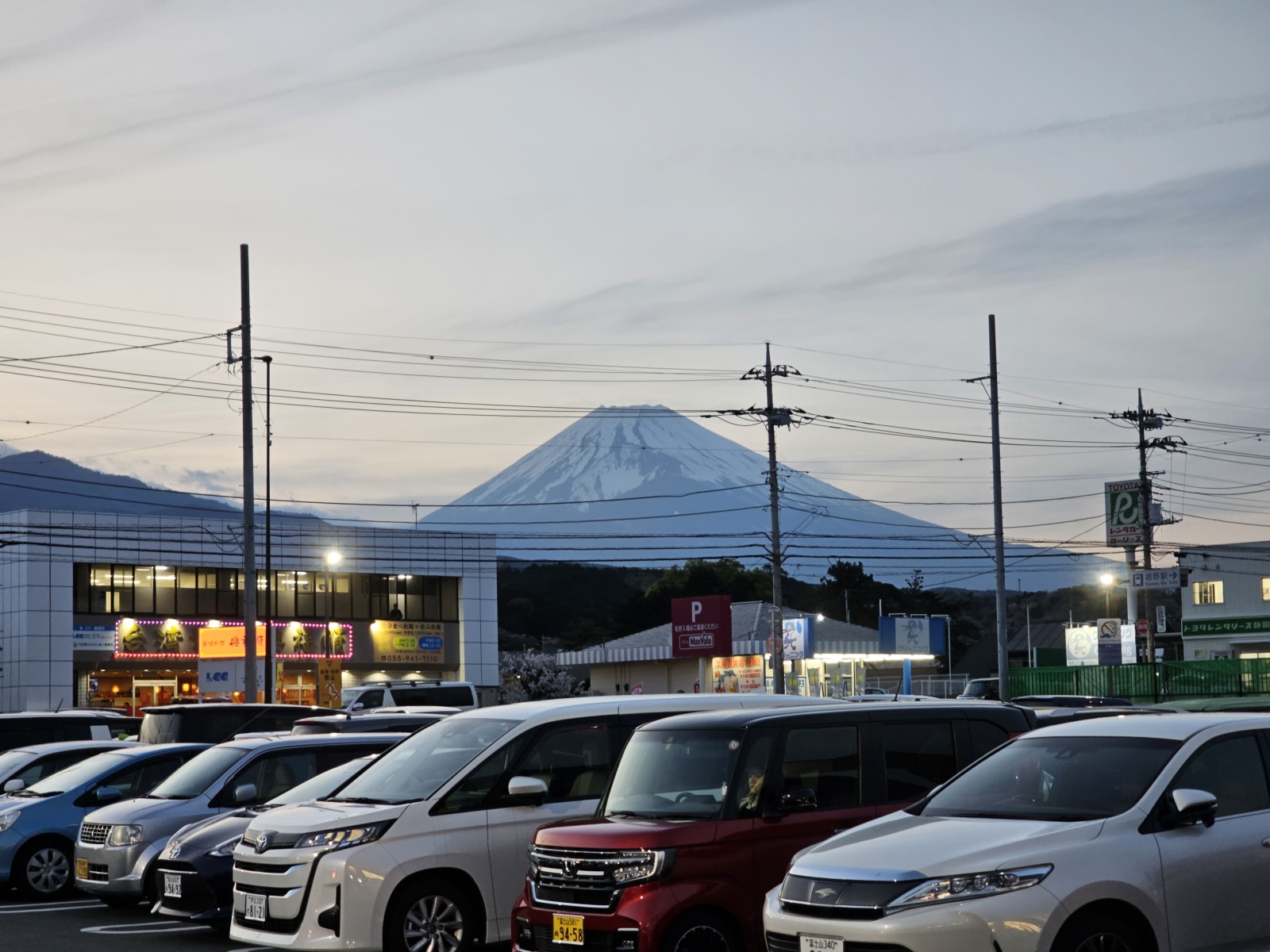 因為富士山很顯眼,回來沿路上常常都看得到,不過沒想到超市的停車場一下來也看得到富士山,雖然稍微有被房子遮住一點,住富士山周邊的人大概都覺得看到不稀奇了吧XD