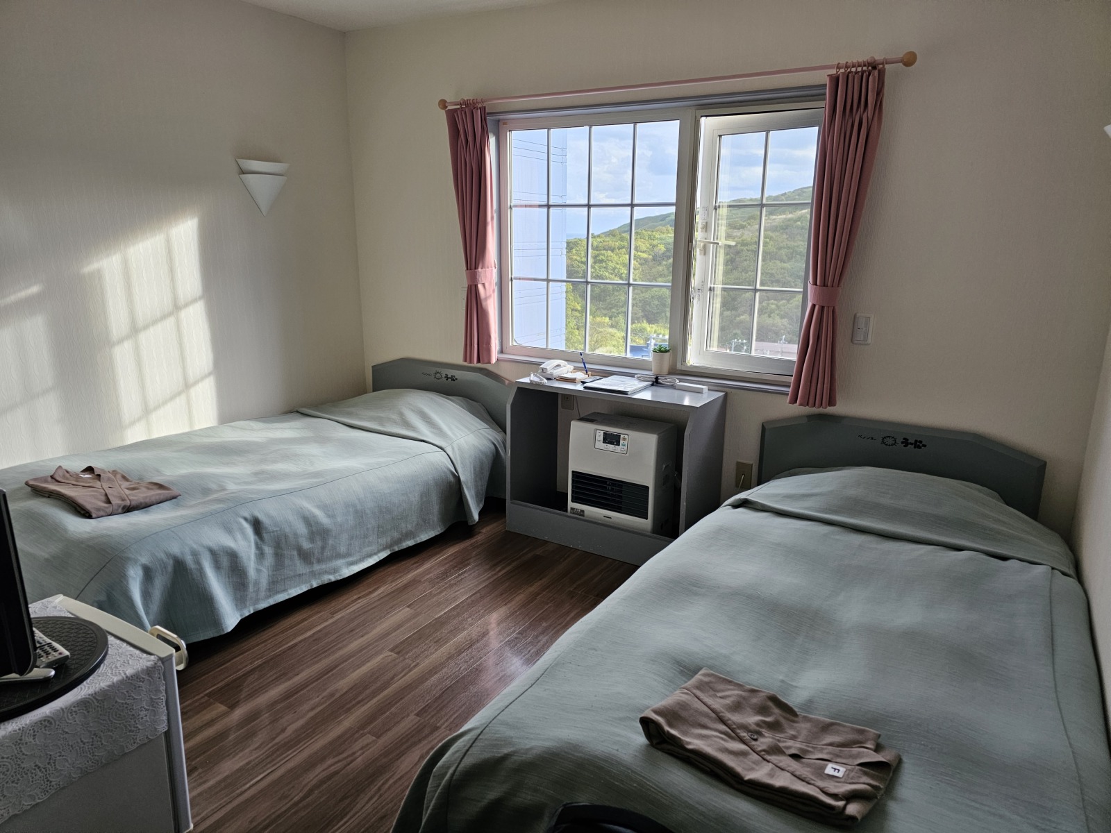 利尻島上的旅館,離渡輪站走路約10~15分就能到,也能先約好來渡輪站接送,旅館隔一條路過去就是海邊,所有房間都是面海,打開就能看到海景,還能看到渡輪進出鴛泊港。