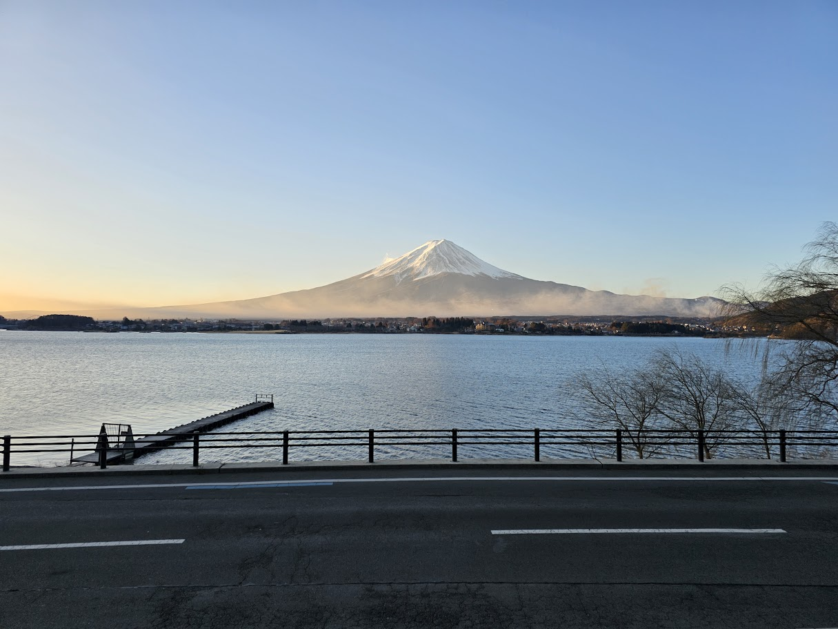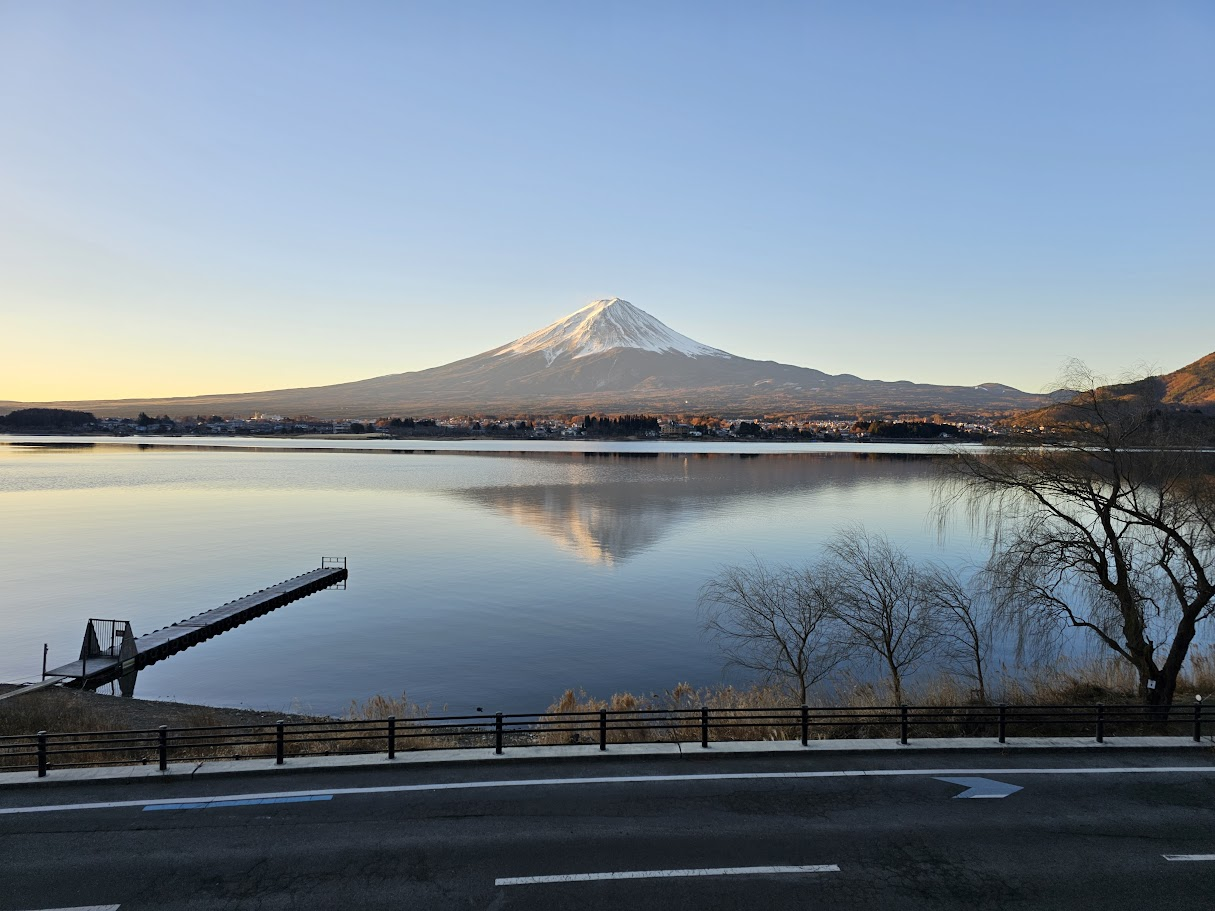 講完了缺點後,首先這家最大的優點就是便宜,E Type基本四人入住的話從便宜的淡季到最貴的旺季價格也才共22000~35200日幣,裡面空間相當大,還有廚房可以煮東西,浴室和廁所是分開的不怕洗澡和上廁所衝突。再來就是最重要也是最大的優點,這個小木屋園區隔著一條馬路就是河口湖,方位又正對富士山,尤其是E Type和F Type最靠馬路,其中我這次入住的E1房型更是就在馬路旁,每天早上拉開窗簾映入眼簾的就是河口湖和完美的富士山,其中有天還看到了一點逆富士,還能走到對面的湖邊直接看富士山,過年期間在這邊住的三天早上都會看到一堆人到對面去瘋狂拍照,營區也很貼心地弄了一個地下道通往河口湖邊,避免直接穿越馬路危險。