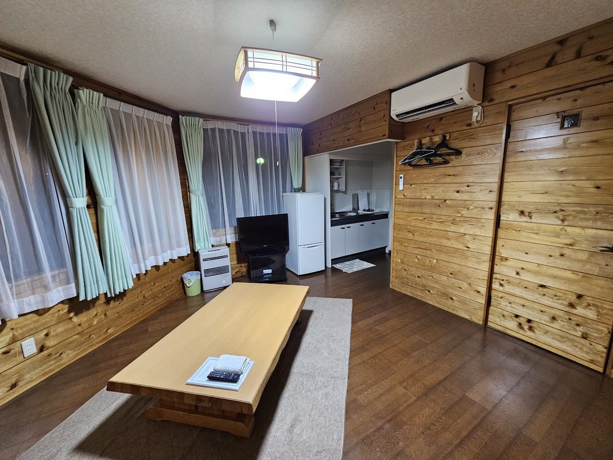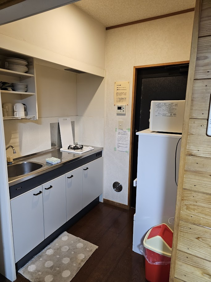 首先先說缺點,第一個是Check-In時間只到晚上六點,不過如果會晚到可以提前說,像我第一天要入住就因為一些小插曲趕不上,趕緊打電話跟櫃台說,工作人員會把鑰匙和枕套床單放到要入住的小木屋裡,到的時候直接進去就可以。再來是很多東西都要自己處理,像上面說的Check-In的時候除了鑰匙外還會給你枕套和床單,晚上睡覺前要自己鋪床和套枕頭,退房的時候也要把枕套、床單、棉被套等拆起來跟鑰匙一起拿回櫃台,垃圾也要自己分好類丟到垃圾集中場去。還有交通稍微不方便,只有河口湖周遊巴士紅線在附近有個站牌,建議還是自駕比較方便。小木屋裡沒椅子只能席地而坐、樓梯稍微有點陡還有要睡榻榻米對行動不便的人可能也比較難受。