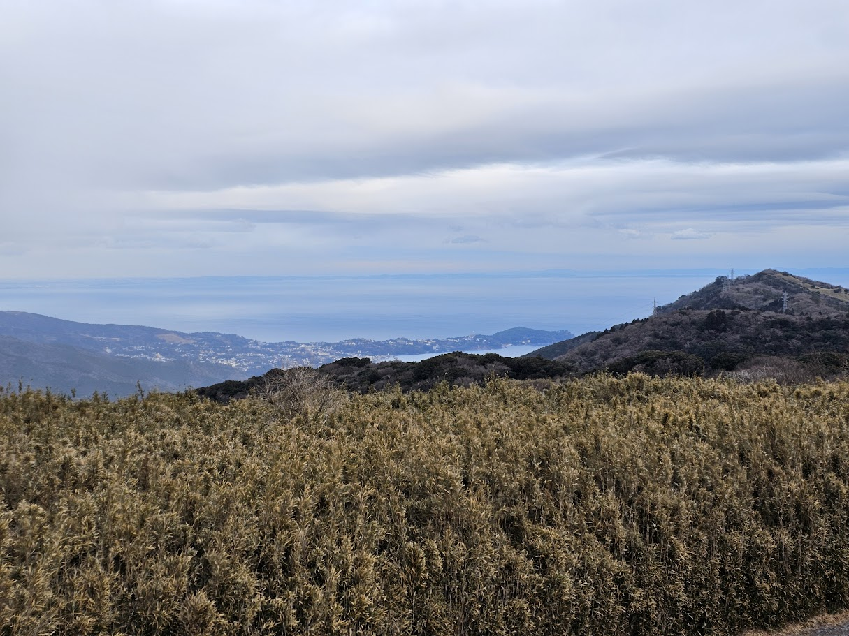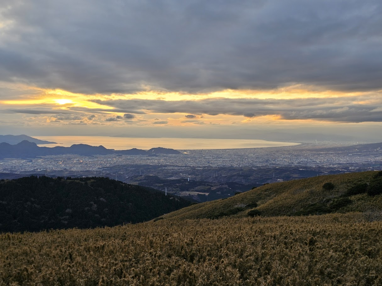 因為是在一個小山頂上,視野相當的好,向西可以看到三島市和駿河灣,向東可以看到相模灣,向北也能看到一點富士山,但很可惜的是我們到的傍晚富士山被雲遮住,只有第二天一早看到一下子,馬上露營區又被雲霧壟罩住,本來想走去纜車站遠眺富士山遇到這種情況也只能作罷。