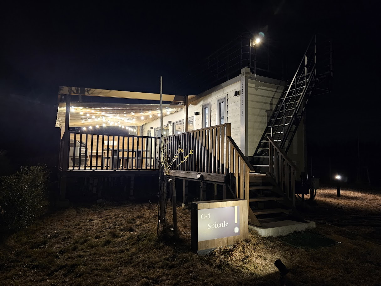整體來說我覺得這邊體驗還算不錯,視野好、餐點美味,但是可能比較適合春秋的時候來,這次冬天來山上實在太冷了,風又超級大,外面的焚火就算點起來也是不夠力,最後幾乎都是躲在室內吹暖氣,只有偶爾煮東西或拍照才會去外面,就比較沒什麼野外露營的感覺。吃完晚餐後有在營區內繞一圈,發現今天只有我們一家入住XDD,工作人員搞不好也覺得居然會有外國人這個時間點跑來住吧。